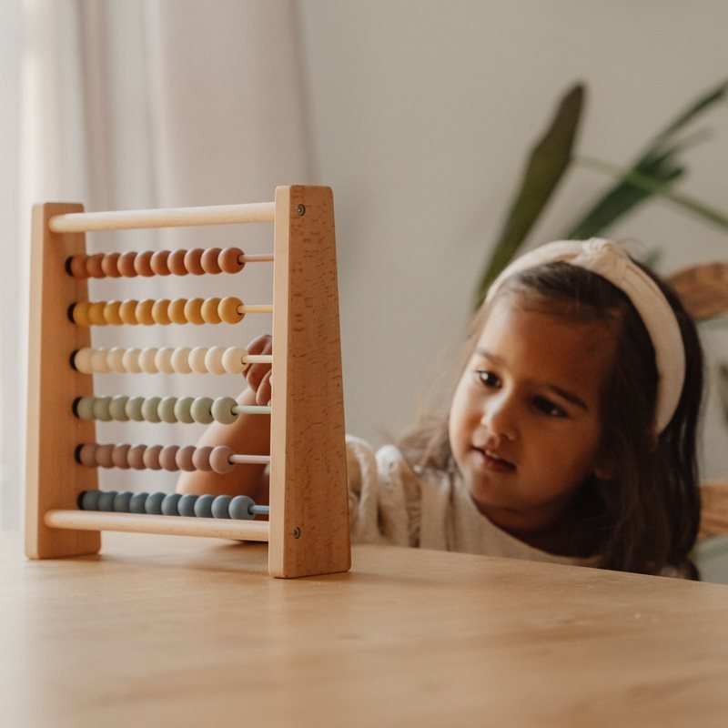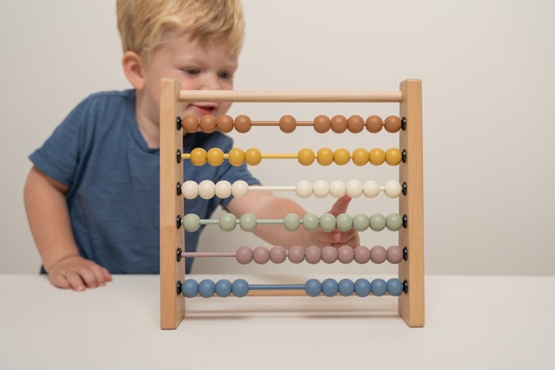 Aprender a contar será mais divertido que nunca com este novo Ábaco em tom vintage, da Little Dutch. O ábaco tem contas de madeira que deslizam pelas 6 peças horizontais de metal, assente uma base de madeira, com 10 contas de madeira em cada.