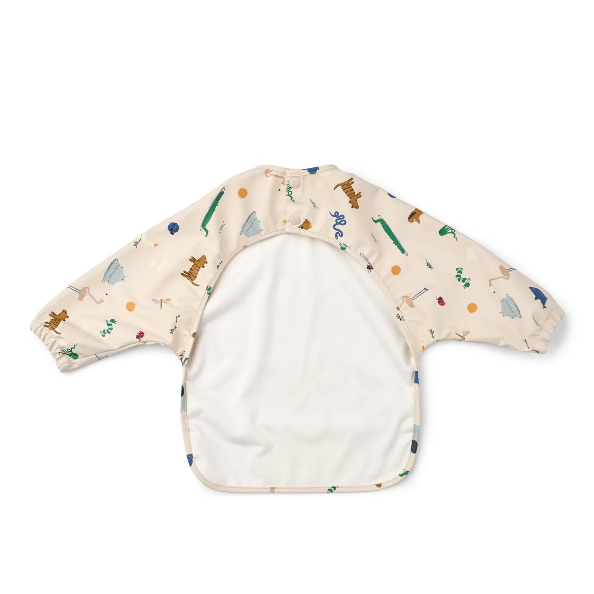 A introdução alimentar e as horas de refeição são sempre divertidas quando há bebés à mesa! Comida a voar por todo o lado! Mas podemos proteger os pequeninos para não ficarem muito sujos, e os babetes com manga são a opção ideal. Este babete da Liewood com um design super giro, é prático e leve para que o bebé fique confortável enquanto explora a comida. As mangas longas com elástico nos pulsos oferecem proteção extra e o bolso à frente apanha a comida que possa cair.