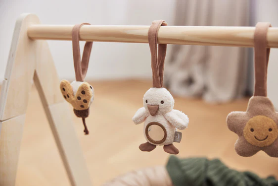 Sabemos bem quanto os ginásios de atividade são importantes, e a quantidade de estímulos que podemos proporcionar ao nosso bebé são imensas. Uma forma de o fazer é ir diversificando os brinquedos pendurados na estrutura. Estes brinquedos para ginásio, para além de formas e cores diferentes, têm também sons e texturas muito estimulantes, temos a flor, a borboleta e o pato, todos com um toque muito fofinho e apertá-los vai despertar imenso das sensação e bastante agradáveis.