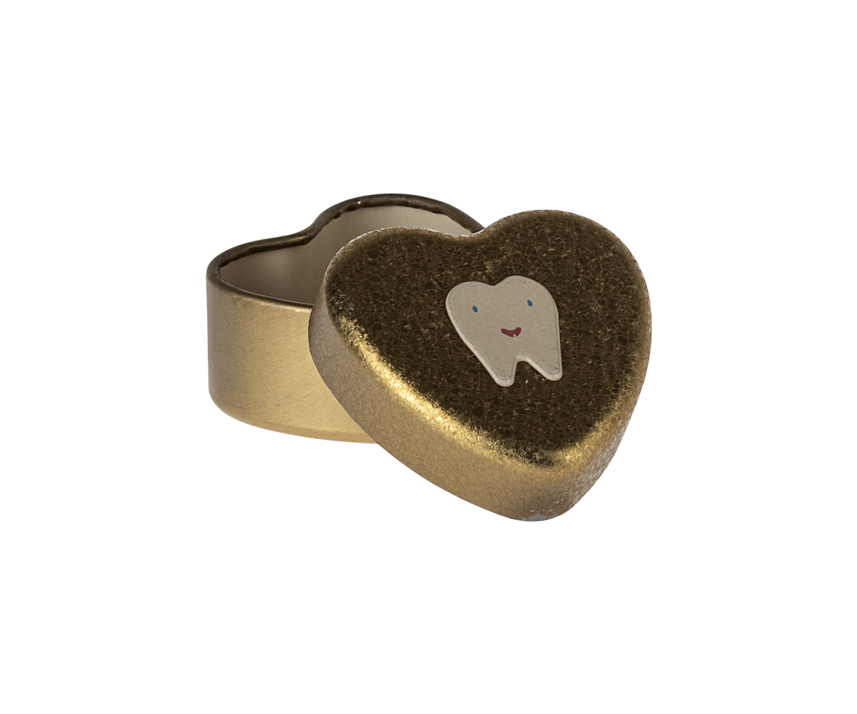 Descobre a encantadora Caixa de Dentes Pequena – Dourada da Maileg, perfeita para guardar os dentinhos de leite do teu filho e preservar memórias especiais da infância. Com um design delicado e funcional, esta caixinha torna-se um tesouro único para a tua família.