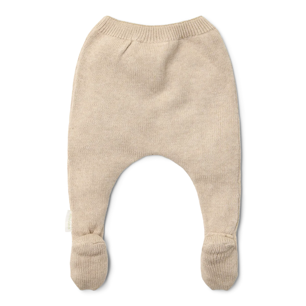 Estas calças com pé, em malha bege mesclada super macia, são essenciais nos dias frios. Adeus meias a cair! Os pezinhos mantêm-se quentinhos e o lacinho subtil dá um toque de ternura. A qualidade macia e quente garante o máximo conforto. Em algodão orgânico com certificação Oeko-Tex. Combina com o casaquinho da mesma linha para um look aconchegante. Disponível dos tamanhos 44 aos 74.