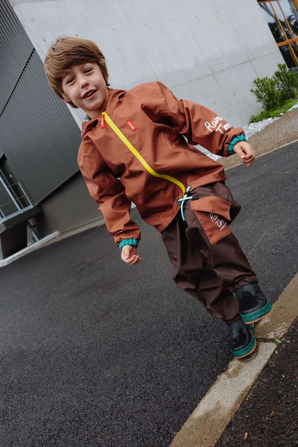 Quem disse que os dias de chuva são para ficar em casa? Com o casaco impermeável Peanut, os pequenos exploradores vão adorar saltar nas poças, correr no parque e descobrir a natureza mesmo debaixo das nuvens cinzentas. Leve, respirável e à prova de chuva, este casaco transforma qualquer dia cinzento numa nova aventura ao ar livre. Um essencial de meia-estação que vai transformar qualquer passeio chuvoso numa memória divertida e incrível. Combina na perfeição com as Calças de Chuva que pode encontrar na EhGoom. Também poderás encontrar aqui as Galochas mais giras e assim ter o equipamento completo para brincadeiras perfeitas durante todo o inverno ou época das chuvas.
