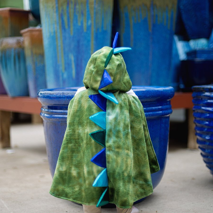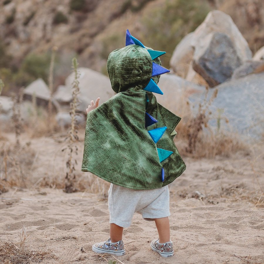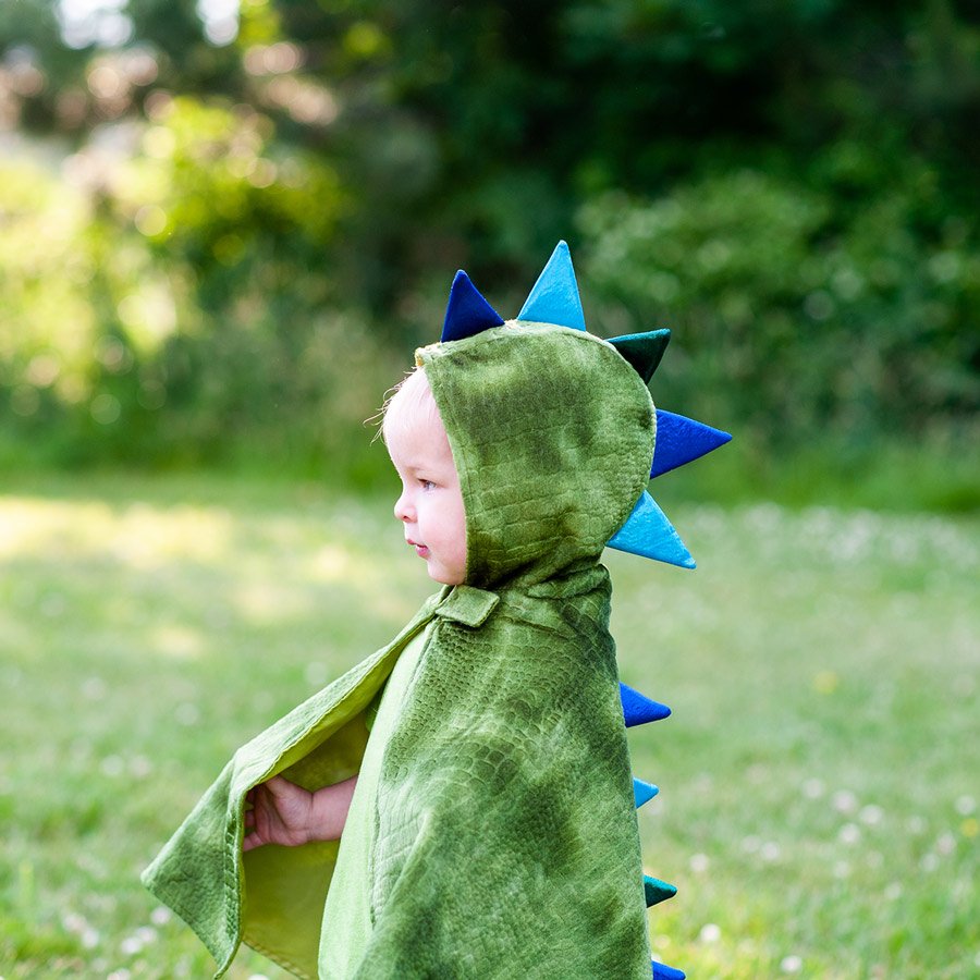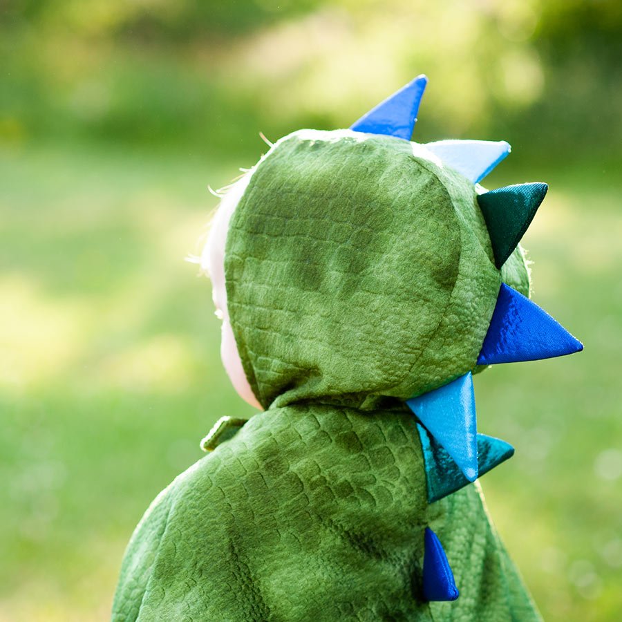 Esta Capa de Dragão irá fazer do seu Bebé um verdadeiro cuspidor de fogo. Com uma capa de veludo com textura em escamas ninguém vai parar a imaginação até dos Bebés mais pequenos entre os 12/24 Meses ou os 2/3 Anos. Esta capa de Dragão é feita de veludo macio e com efeito de escamas com vários tons de verde para um visual de Dragão perfeito. Este disfarce em capa vai proporcionar ao seu pequeno inúmeras horas de brincadeiras emocionantes e aventuras cheias de fantasia! É sem dúvida uma óptima capa de Dragão de grande qualidade. Os espigões são forrados com espuma e foram desenhados para ficarem em pé o que confere um efeito muito real a esta fantasia. Tem um fecho em velcro no pescoço o que faz com que esta Capa seja muito fácil de colocar e de tirar.