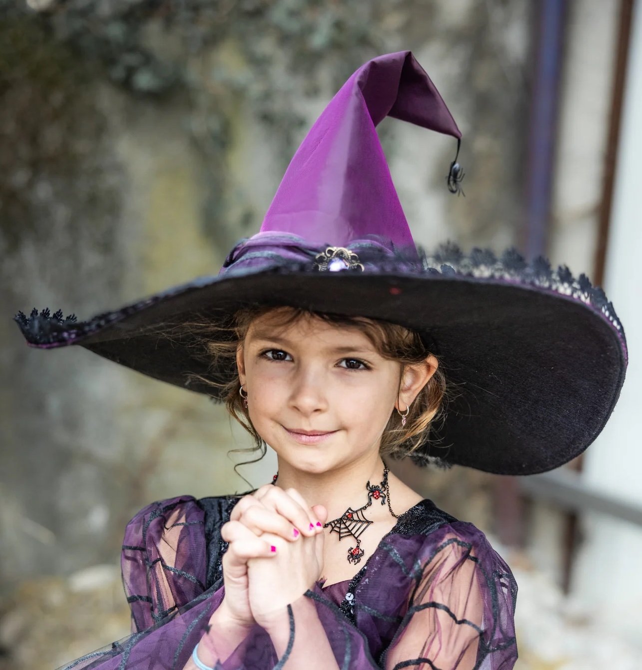 Apresentamos o Chapéu de Bruxa Roxo – Amethyst, um acessório encantado que vai dar um toque mágico ao teu disfarce de Halloween. O roxo profundo transmite mistério e elegância, enquanto o detalhe rendado na aba acrescenta um toque delicado e feminino. Para completar o feitiço, uma aranha assombrosa pendurada na ponta do chapéu dá o equilíbrio perfeito entre diversão e aquele arrepio arrepiante típico da época. Ideal para bruxas, feiticeiras ou para quem quer lançar um feitiço de estilo — um acessório obrigatório para qualquer celebração de Halloween. Ideal para uma Festa de Halloween ou de Carnaval!