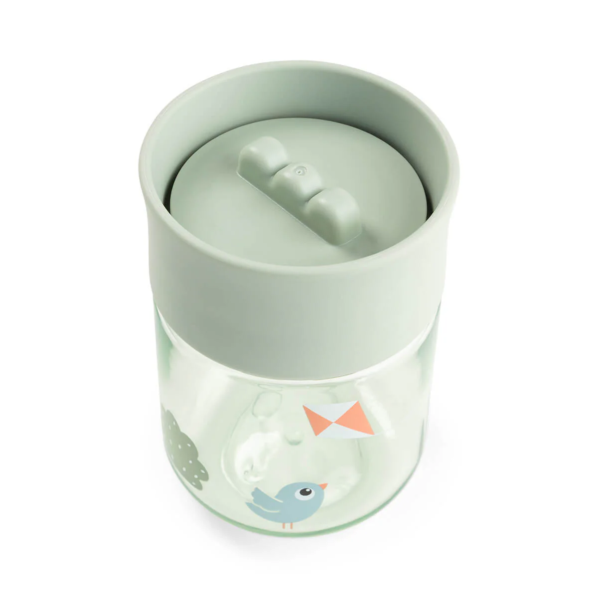 Feito em materiais seguros para alimentos, o copo é suave ao toque e ideal para as mãozinhas curiosas. Com um elegante tom verde e com as personagens características da Done by Deer, o copo educativo traz um toque de diversão ao momento de aprendizagem. O sistema 360° permite que a criança beba de qualquer lado do copo, promovendo a autonomia e a confiança. Além disso, é fácil de limpar e transportar, tornando os momentos de refeição ainda mais práticos.
