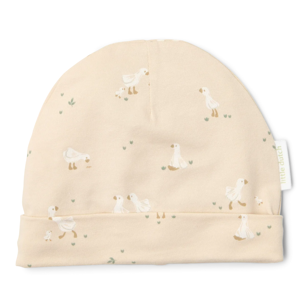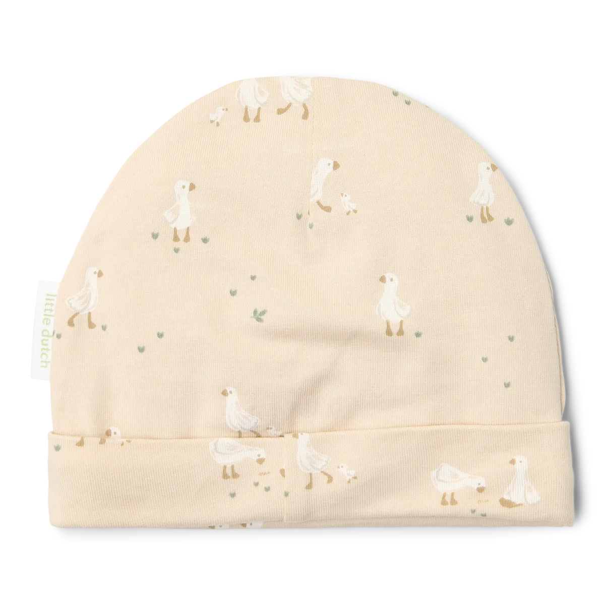Olá, pequenos gansos! Este gorro com estampado Little Goose é feito em algodão orgânico super macio e mantém a cabeça do teu bebé bem quentinha. Com elástico para melhor ajuste e etiquetas decorativas. Disponível em tamanho 1 (0–3 meses) e 2 (3–6 meses).