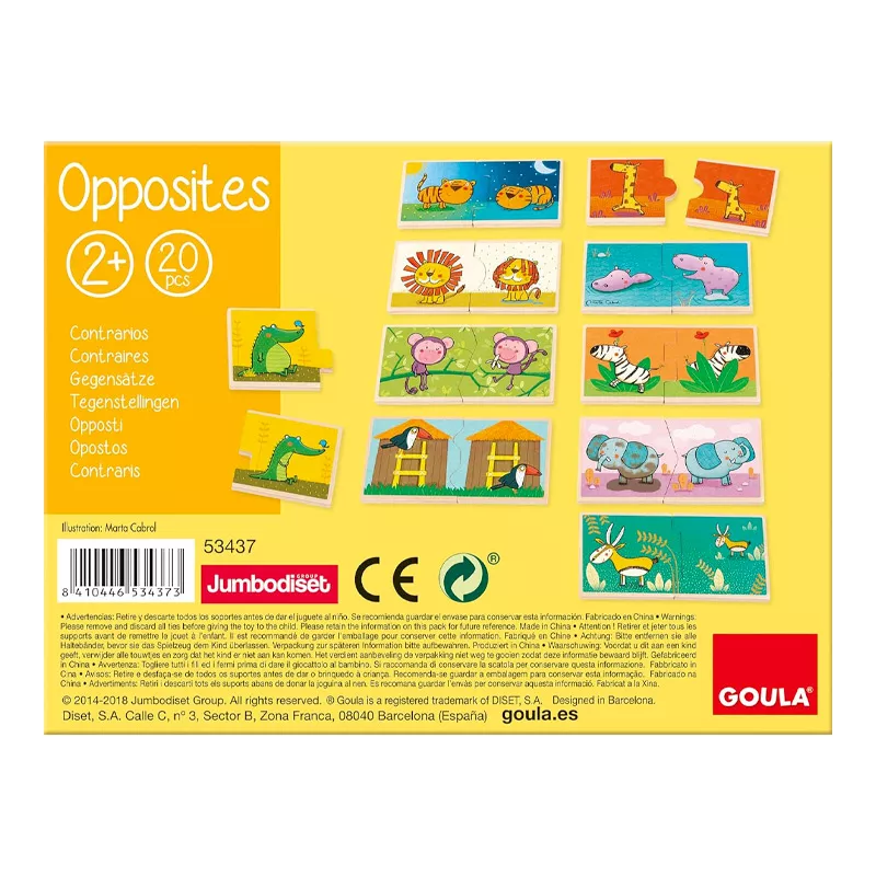 Prepare-se para uma nova aventura com este fantástico jogo infantil que foi criado para ajudar os mais pequenos no seu desenvolvimento e entretenimento numa base diária ao percepcionarem os contrários e opostos! Este conjunto inclui peças em madeira de puzzle coloridas e especiais com uma variedade de ligações diferentes. Cada peça inclui uma imagem que os mais pequenos têm de combinar com o seu oposto para compreender conceitos como: frente ou costas, dia e noite, sujo ou limpo e muitos mais.