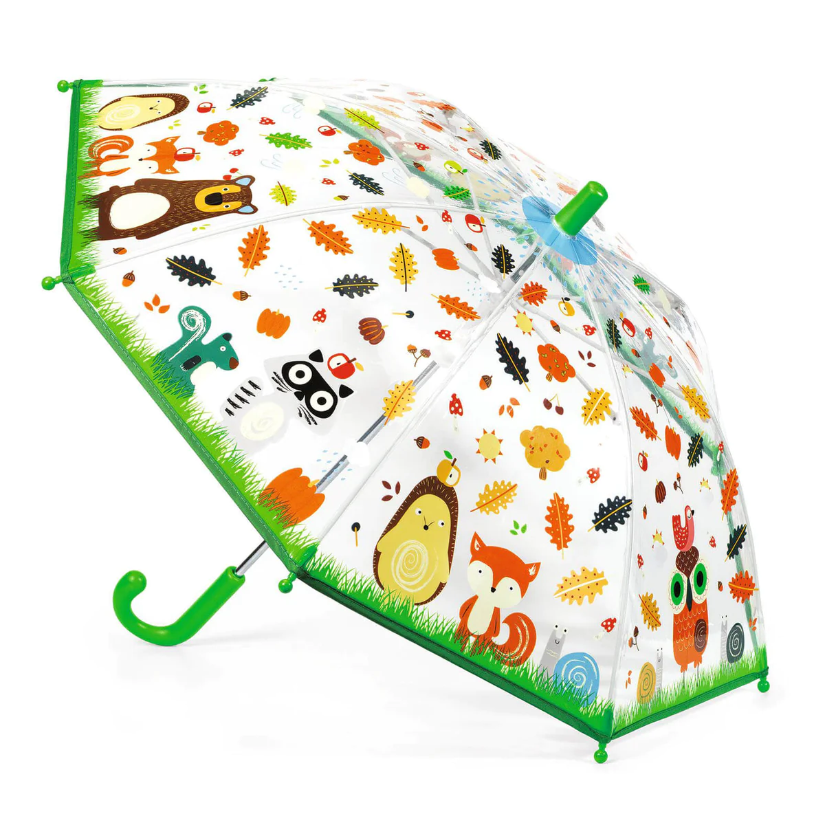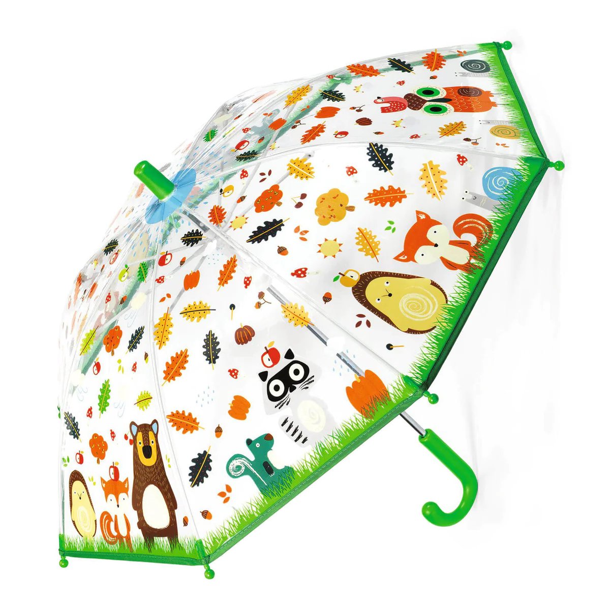 Vamos dar um passeio pela floresta na chuva! Com o seu pequeno tamanho e forma muito expansiva, este guarda-chuva bonito e prático é adequado para crianças com 3 anos ou mais. Que divertido segurar o guarda-chuva tal como os adultos! A abertura manual com sistema de proteção permite que a criança abra e feche o guarda-chuva sem apertar os dedos. Tem um prático laço com uma mola para que o possam manter bem fechado quando não estiver em uso e um sistema anti-beliscão para proteger os dedos. Na EhGoom somos muito fãs destes acessórios coloridos pois são ideais para animar uma viagem na chuva e um presente fantástico para qualquer criança!