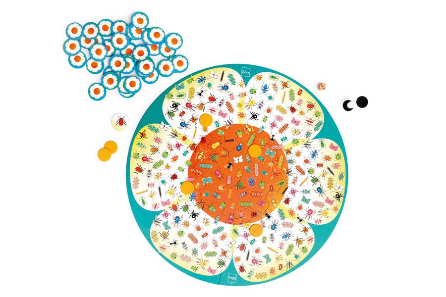 Como jogar: Lança o dado e vira uma peça qualquer, observa com atenção o inseto mostrado. Vira a peça ao contrário e vira