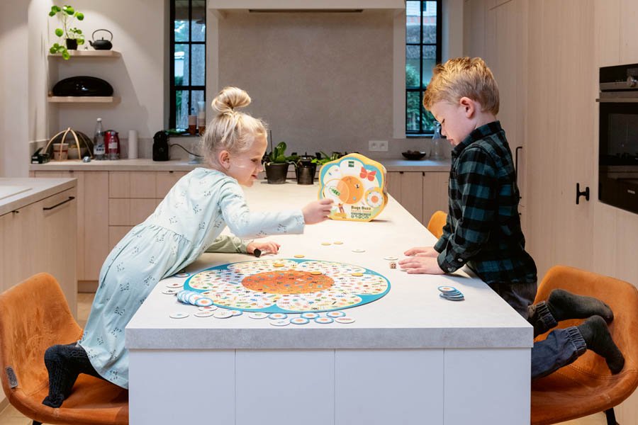Preparação do jogo: Monta o tabuleiro de jogo com as peças puzzle, vira todas as peças de forma a que as flores brancas fiquem