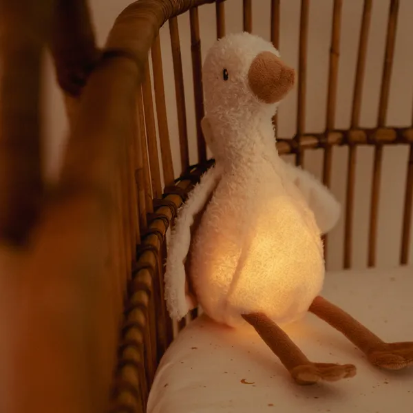 Com design inspirado no simpático Little Goose da coleção Newborn Naturals, este peluche é ideal para colocar no berço, no carrinho ou no quarto do bebé. Inclui carregamento USB para maior conveniência.