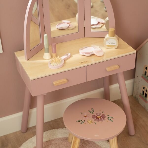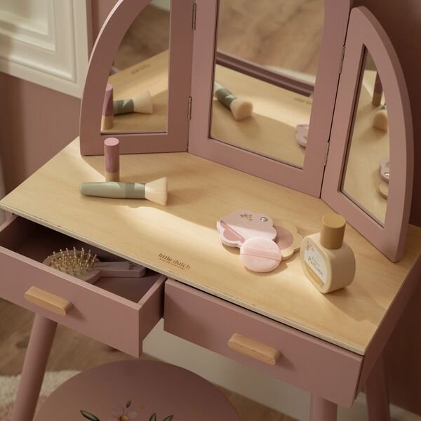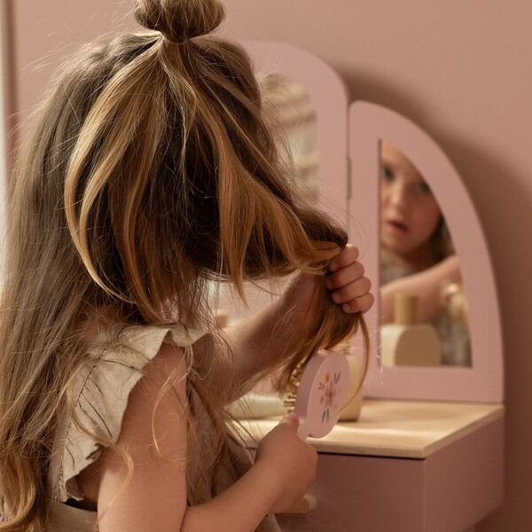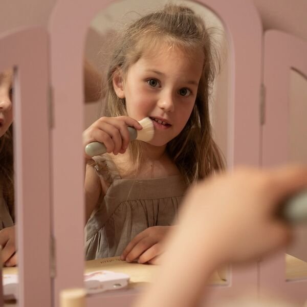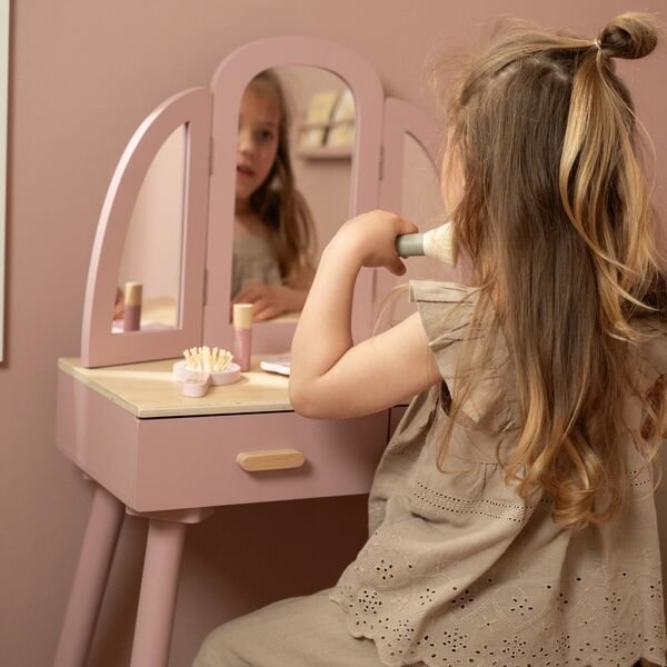 A mesa de maquilhagem da Little Dutch é o cenário perfeito para os sonhos e as brincadeiras da sua pequena. Imagina-a a usar a sua imaginação, a explorar o mundo da beleza enquanto se expressa através da magia do faz de conta. Este é mais do que um simples brinquedo; é um espaço onde a criatividade flui e as memórias são feitas.