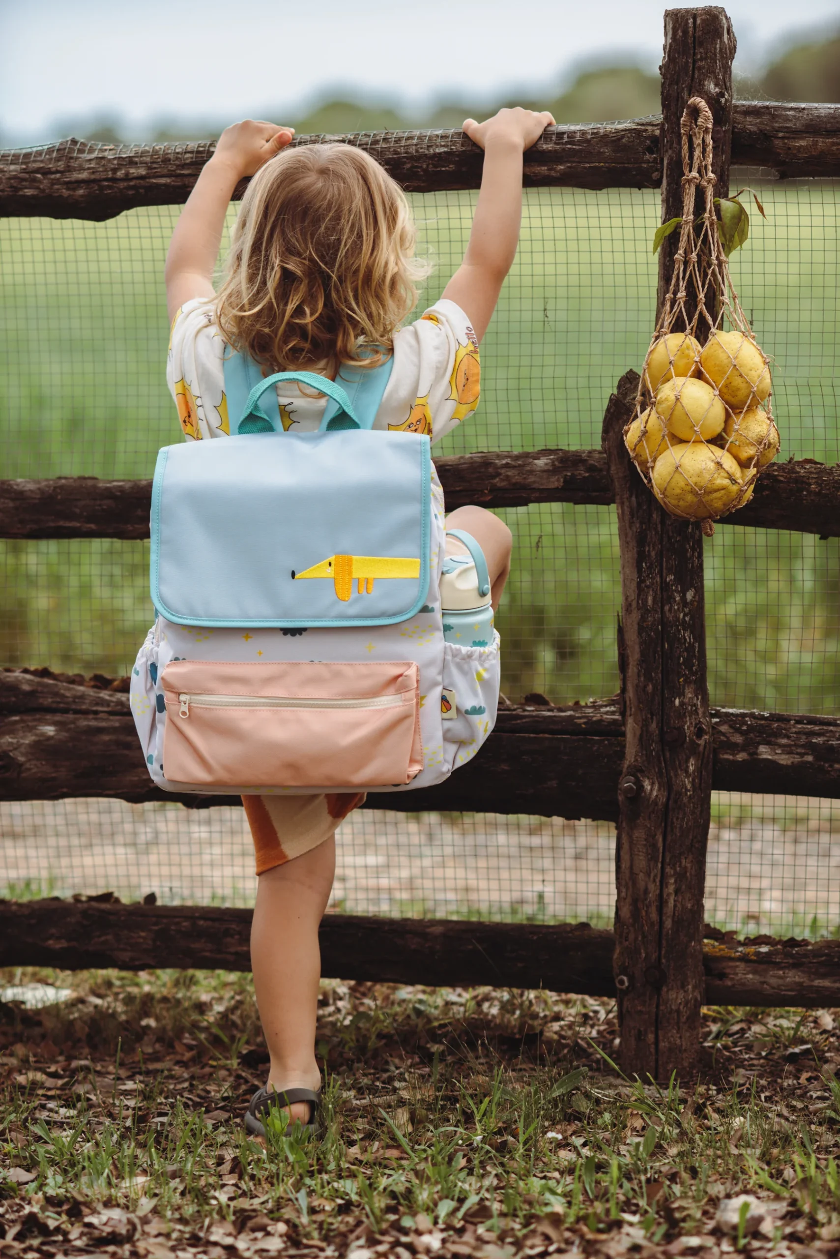 Esta Mochila é ideal para os alunos que vão iniciar o percurso escolar no 1º Ciclo. E na verdade nada melhor do que começar a Escola com a Mochila mais gira da turma! Verdade!? Uma Mochila sustentável pois é feitas em RPET, um material sustentável derivado de garrafas plásticas recicladas, essas mochilas são elegantes e sustentáveis. Os cadernos e livros A4 cabem perfeitamente na área principal de armazenamento interno. Com um design elegante e funcional, cada mochila possui um bolso externo com zíper de fácil abertura, bem como bolsos laterais elásticos projetados para guardar as garrafas de água. Dentro da mochila há um compartimento principal espaçoso e um bolso com zíper. As alças ajustáveis ​​garantem um ajuste confortável nos ombros mais pequenos, enquanto a alça de cima é robusta permite fácil transporte. Na EhGoom poderá encontrar também as garrafas e lancheiras do mesmo tema para completar todo este kit escolar maravilhoso.