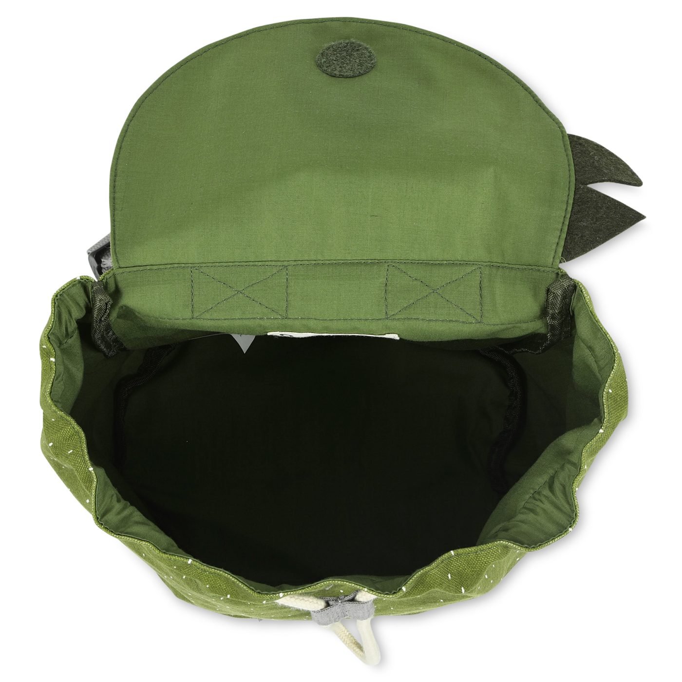 O fecho de corda de correr ajustável na parte superior é bastante prático e permite ter acesso ao interior da mochila de forma rápida e eficiente. Na parte frontal, e de forma a cobrir o fecho de corda de correr, possuí uma aba com fecho de velcro, permitindo que as crianças abram e fechem facilmente a sua mochila Trixie. Para não perder o seu companheiro de viagem, tem uma etiqueta para colocar o nome é na parte interna da mochila. Além disso, a mochila é repelente à água e pode ser lavada na máquina de lavar com um detergente suave.