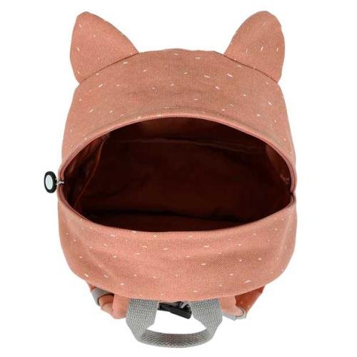 A parte principal e a frontal possuem um fecho que permite que as crianças abram e fechem facilmente a sua mochila Trixie. Para não perder o seu companheiro de viagem, tem uma etiqueta para colocar o nome é na parte interna da mochila. Além disso, a mochila é repelente à água e pode ser lavada na máquina de lavar com um detergente suave.