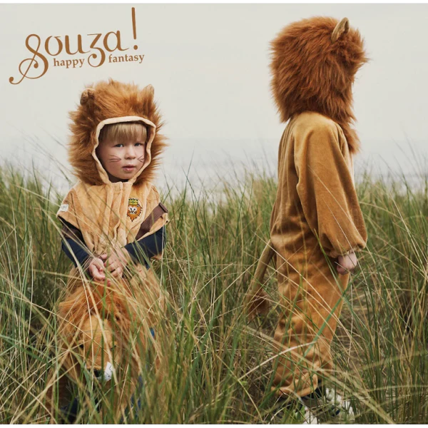 Chegou o Rei Leão!!! O verdadeiro Rei da Selva!! Um espetacular macacão completo de peluche castanho claro e bege com uma linda juba cor de avelã. No gorro há umas orelhas muito fofas e nas costas uma cauda espetacular. No lado esquerdo do peito há um desenho bordado representando um leão com uma coroa. As crianças podem imaginar que são um Leão, o verdadeiro Rei da Selva e correr pelo jardim e vão certamente ser transportados para um Mundo de imaginação e aventura. Muito quentinho este fato tem mangas e pernas compridas e capuz fixo. As pernas, braços e gorro têm bordas elásticas estreitas e o traje é aberto na frente com um prático zíper para vestir e despir muito facilmente.