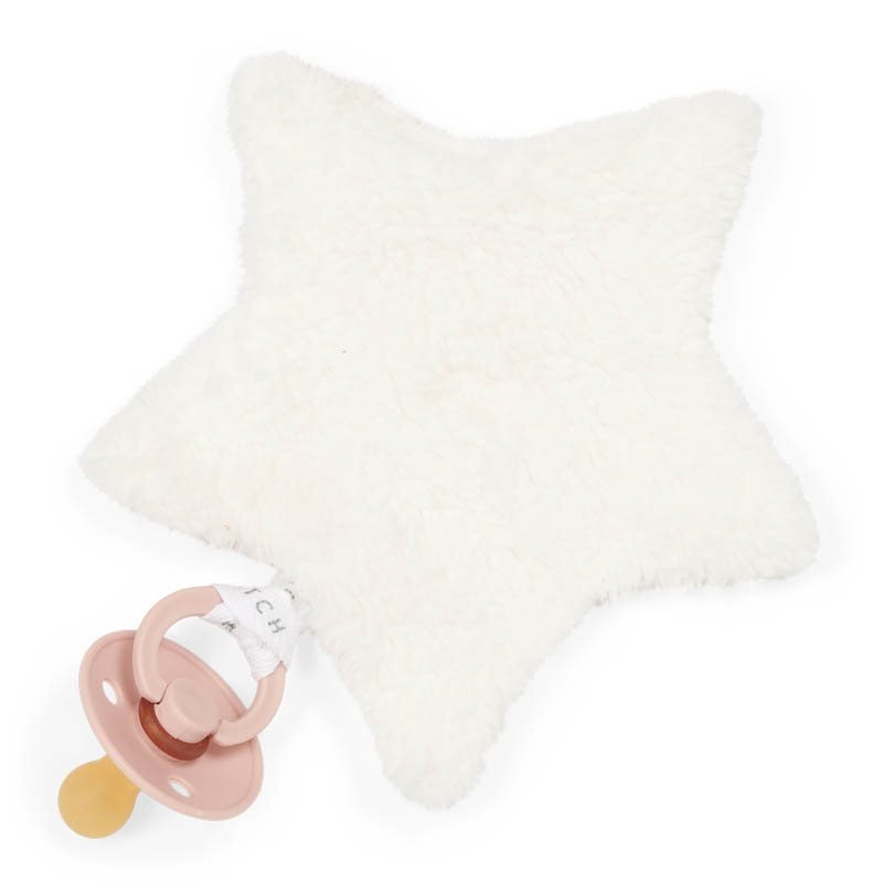 O pano de porta chupetas ultra-macio para bebés e crianças é ótimo e é divertido para abraçar e brincar. Também é mais fácil encontrar uma chucha presa ao pano quando este caiu ou está escondido em algum lugar no saco da fralda. O laço facilita a fixação da chupeta ao pano.