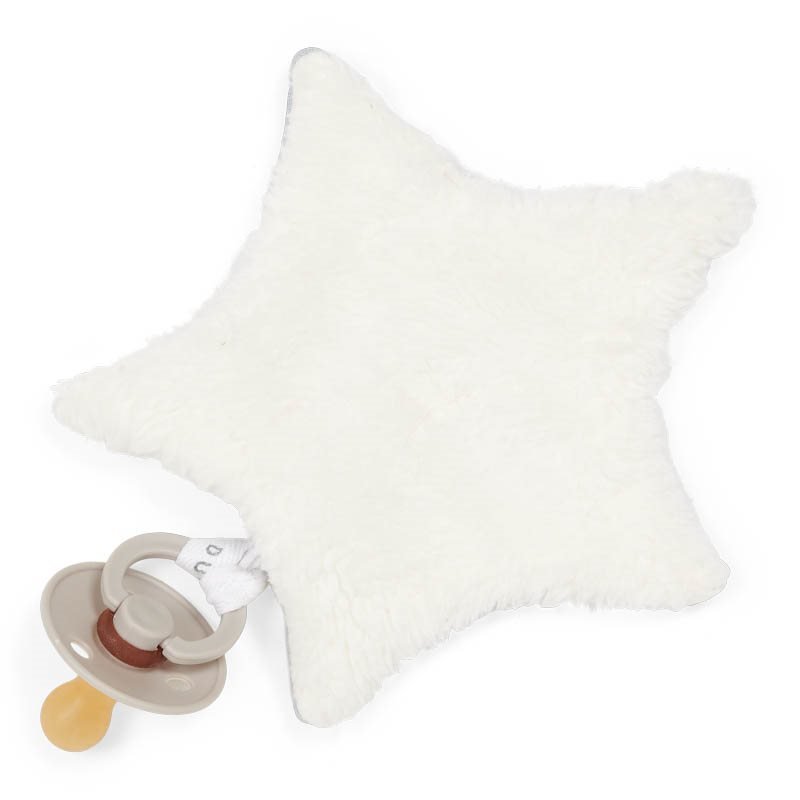 O pano de porta chupetas ultra-macio para bebés e crianças é ótimo e é divertido para abraçar e brincar. Também é mais fácil encontrar uma chucha presa ao pano quando este caiu ou está escondido em algum lugar no saco da fralda. O laço facilita a fixação da chupeta ao pano.