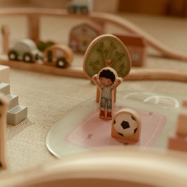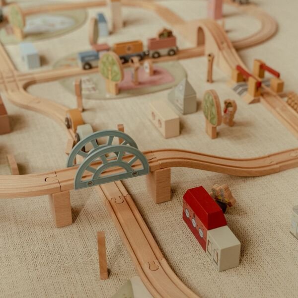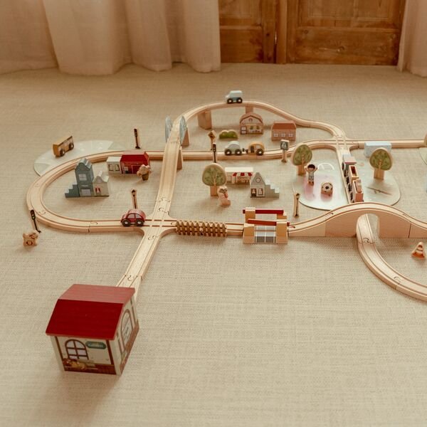 Confeccionada com materiais sustentáveis e certificados, esta pista foi desenvolvida a pensar na segurança e no bem-estar dos mais pequenos. As dimensões generosas permitem que as crianças explorem o seu mundo à vontade, enquanto as cores suaves e naturais deram um toque elegante a qualquer espaço. A Pista de Comboio XXL é ideal para crianças a partir dos 3 anos e é perfeita para brincar em conjunto, promovendo momentos de ligação e partilha entre pais e filhos.