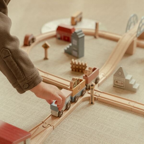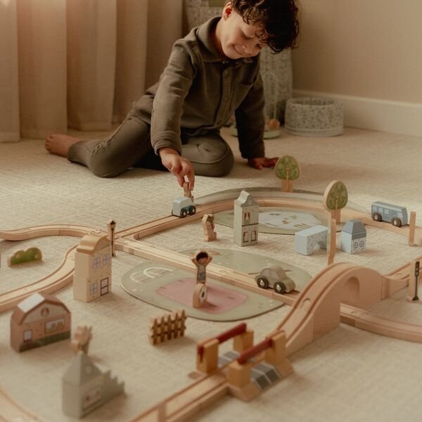 A Pista de Comboio XXL FSC da Little Dutch é mais do que um simples brinquedo; é um convite a momentos de pura magia em família. Imagina a alegria do teu pequeno ao ver o comboio a serpentear por uma paisagem encantadora, cheia de detalhes que estimulam a imaginação e a criatividade. Cada curva desta pista é uma nova aventura, repleta de risos e histórias por contar.
