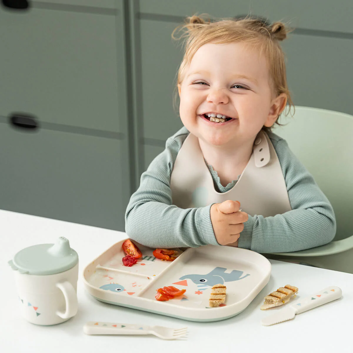 Com um design encantador e funcional, este prato compartimentado é feito em polipropileno durável e adequado para alimentos. As suas dimensões perfeitas permitem que as porções sejam bem distribuídas, tornando cada refeição equilibrada e apetecível. Disponível numa suave cor areia, é seguro, resistente e reciclável. Ideal para crianças a partir dos 6 meses, este prato é uma escolha prática e elegante para as refeições do dia a dia.