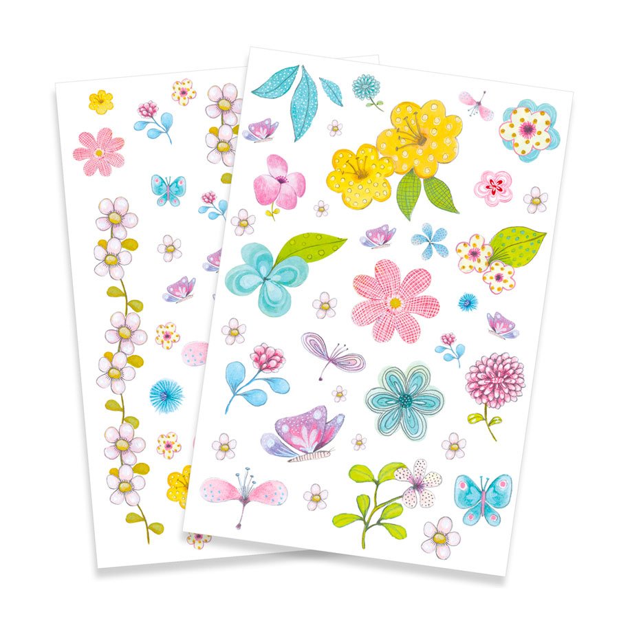 Descobre as Tatuagens Belas Flores do Campo, com glitter. São muitas as tatuagens temporários, que podem ser usadas nas crianças. São tatuagens dermatologicamente testadas e temporárias, que as meninas vão adorar lá por casa. Inclui 2 folhas de tatuagem diferentes de 14 x 21 cm.