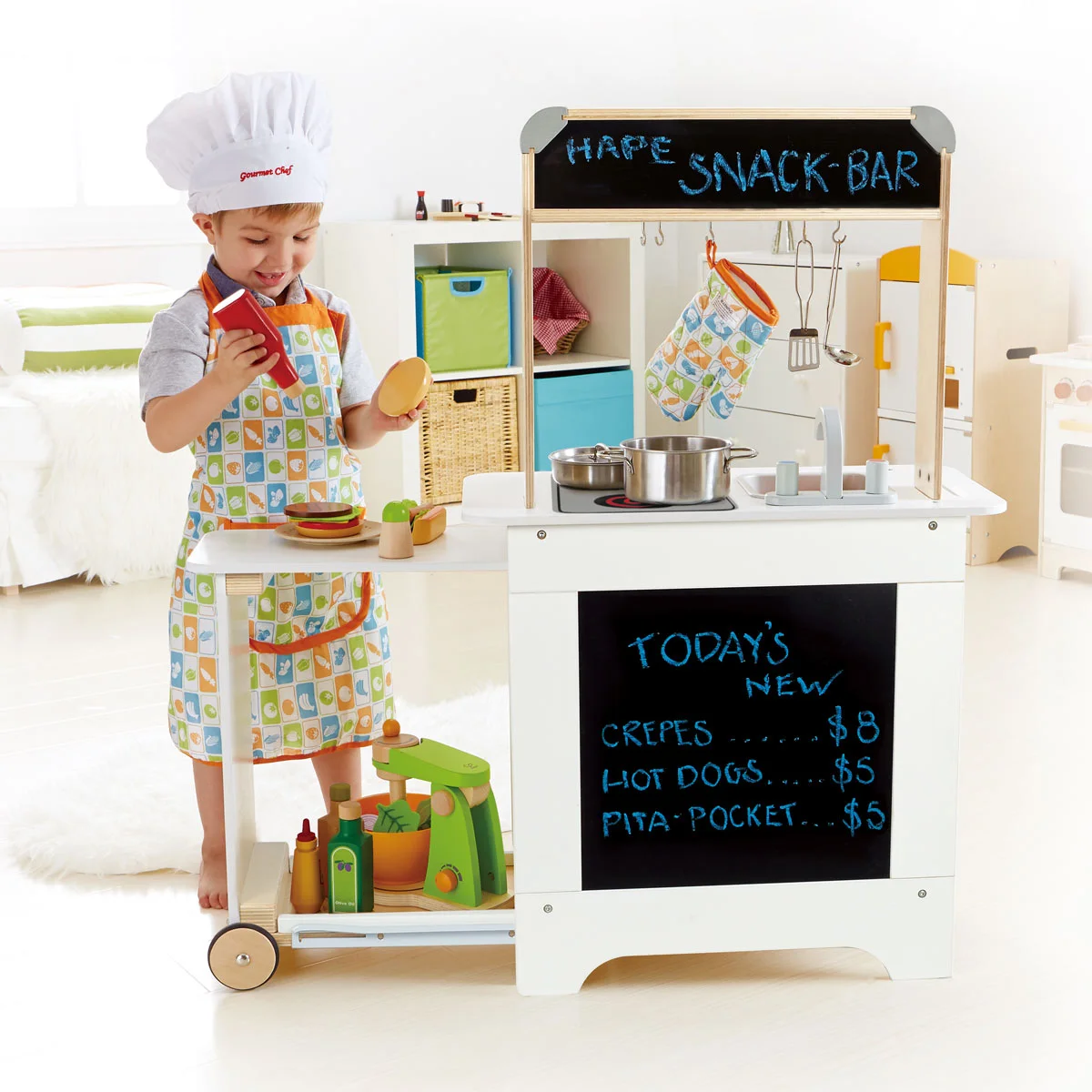 Um brinquedo que tem de fazer garantidamente do leque de ofertas do Natal é a Cozinha Gourmet Branca, da Hape, toda em Madeira, e com botões e torneira, para que a experiência seja o mais real possível.