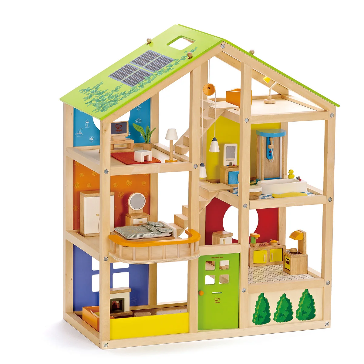 A nossa sugestão neste Natal vai mesmo para a Casa de Bonecas – All Season, uma casa com Seis divisões, escadas móveis e um telhado com painéis solares reversível, com um tema de inverno e outro de verão, para inspirar brincadeiras durante todo o ano. Inclui quatro conjuntos de mobílias: Quarto Principal, Casa de Banho, Sala e Cozinha.